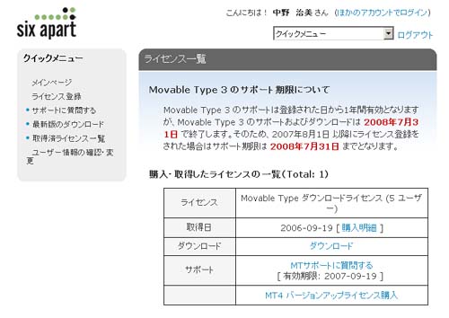 MovableType4.0がリリースされて、CMSとしての機能も充実した分、価格もアップしバージョンアップも有料となった。